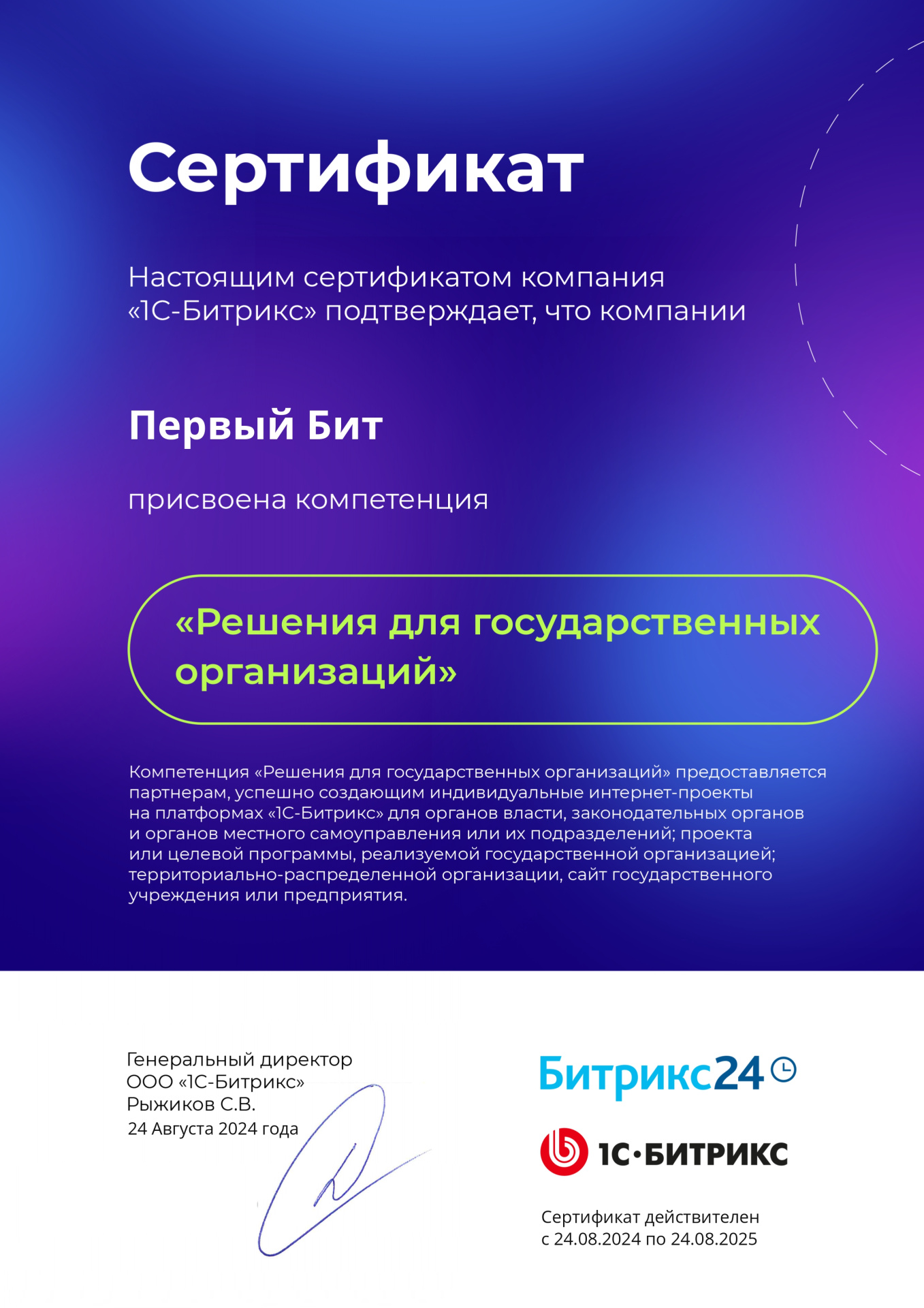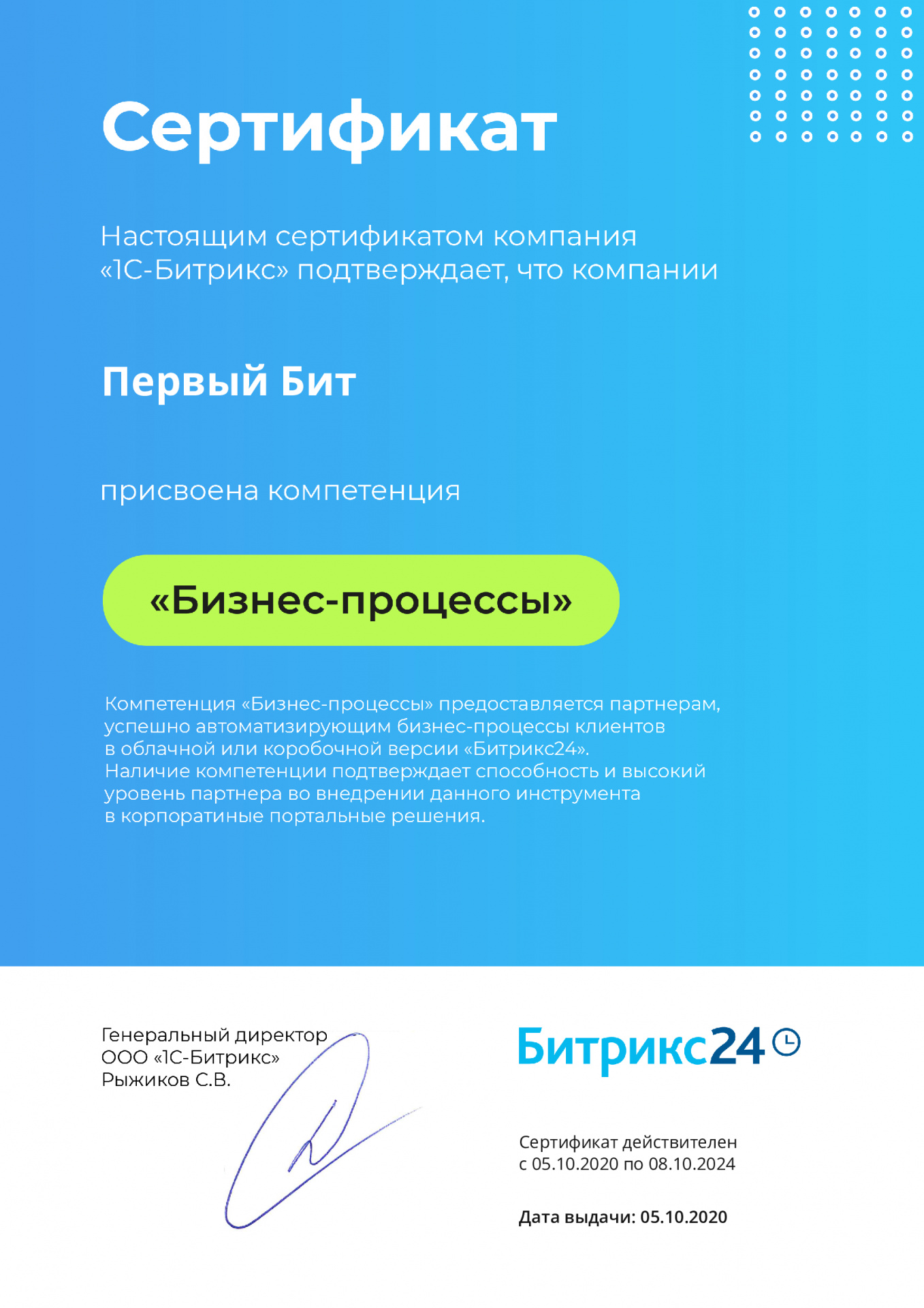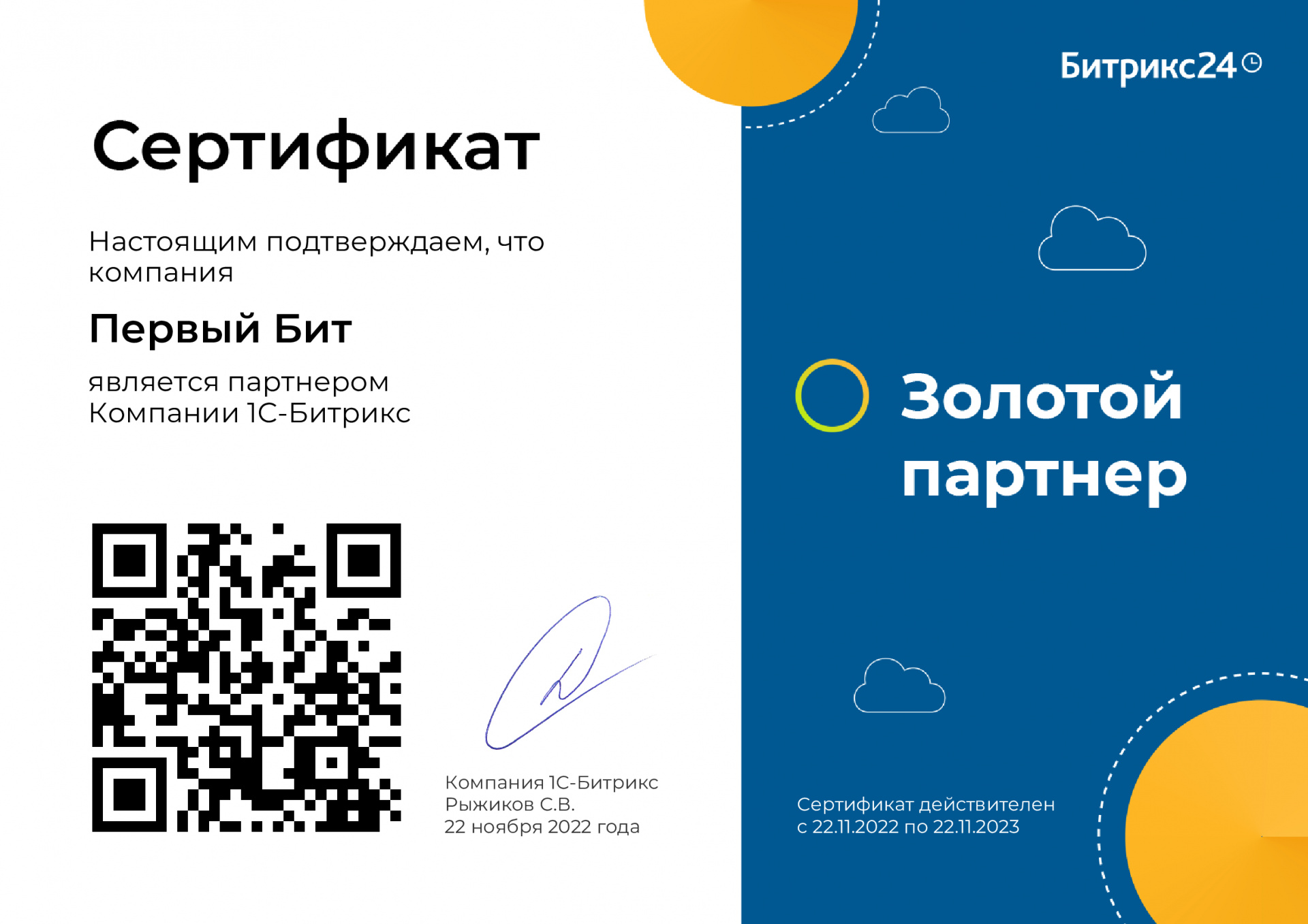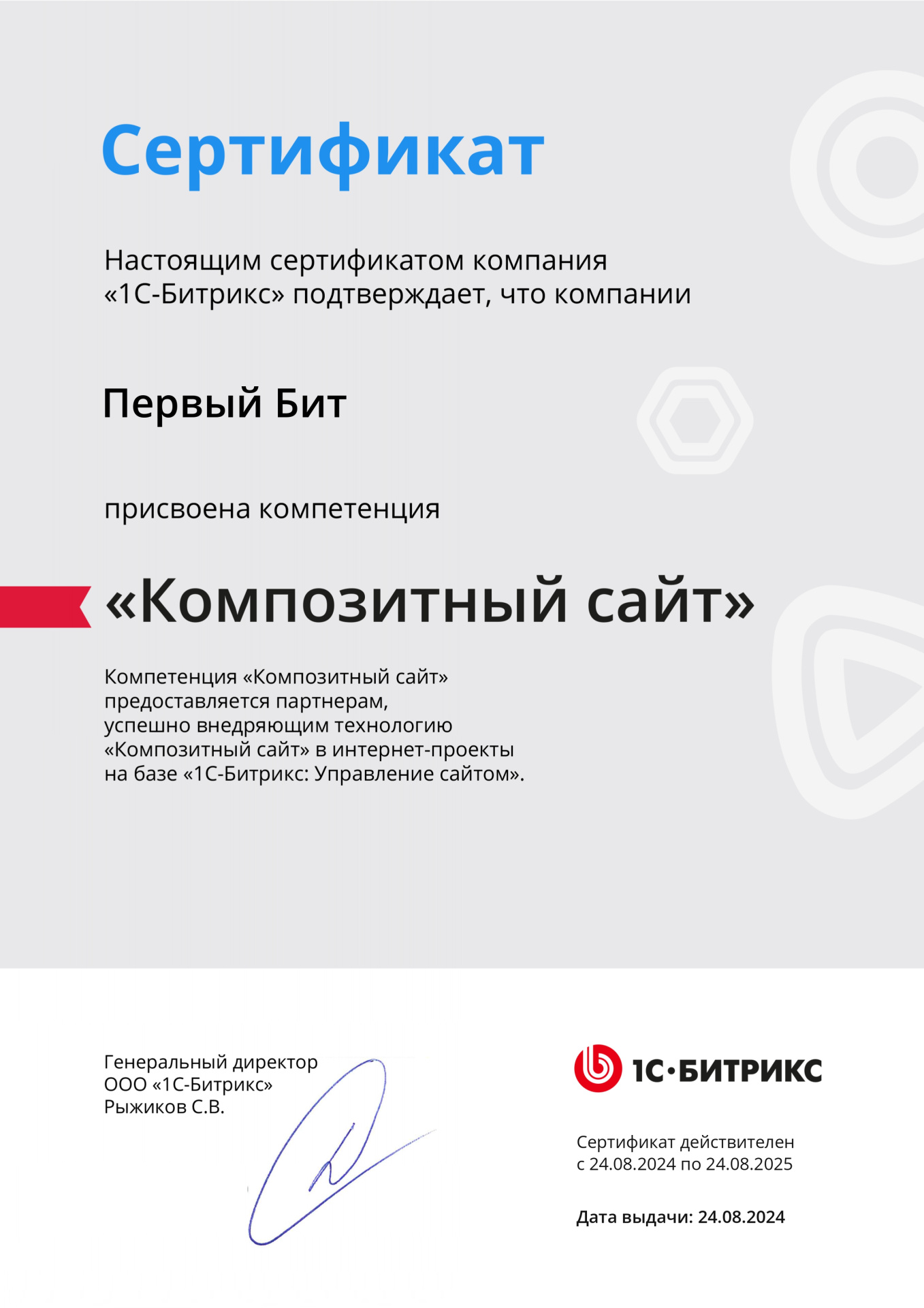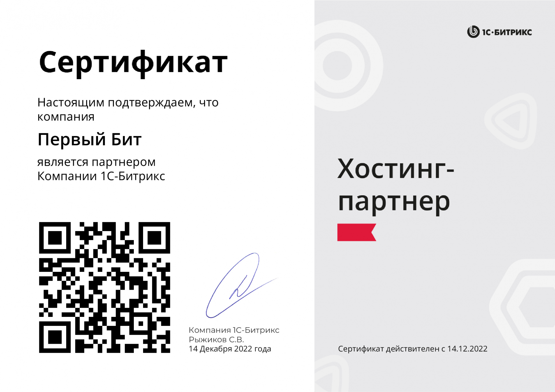 Сертификаты партнёра Первый Бит от 1С-Битрикс