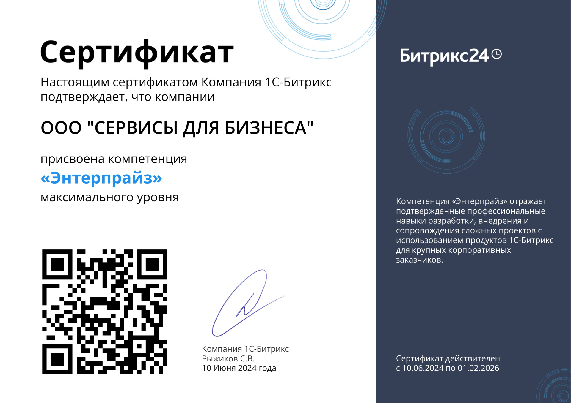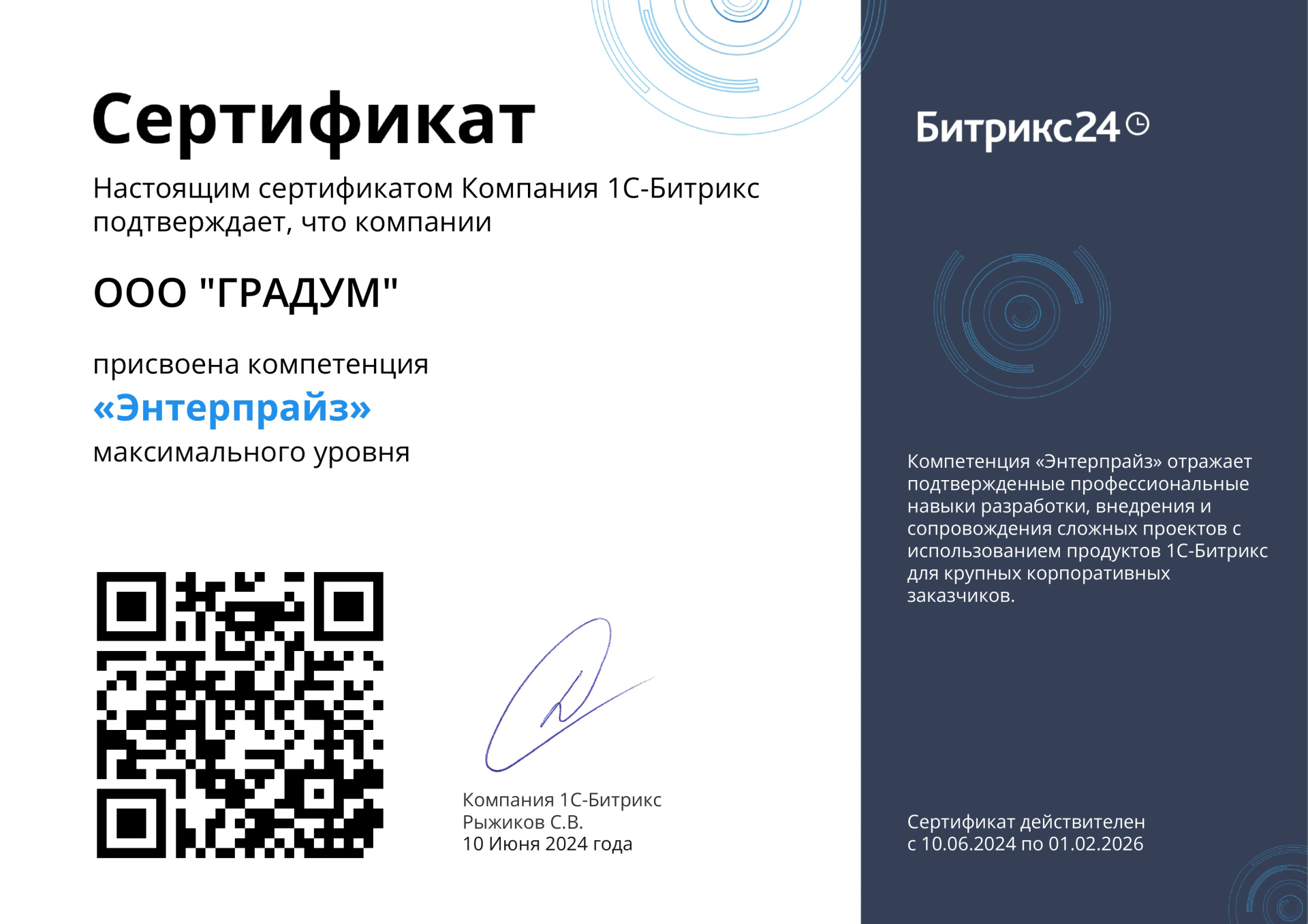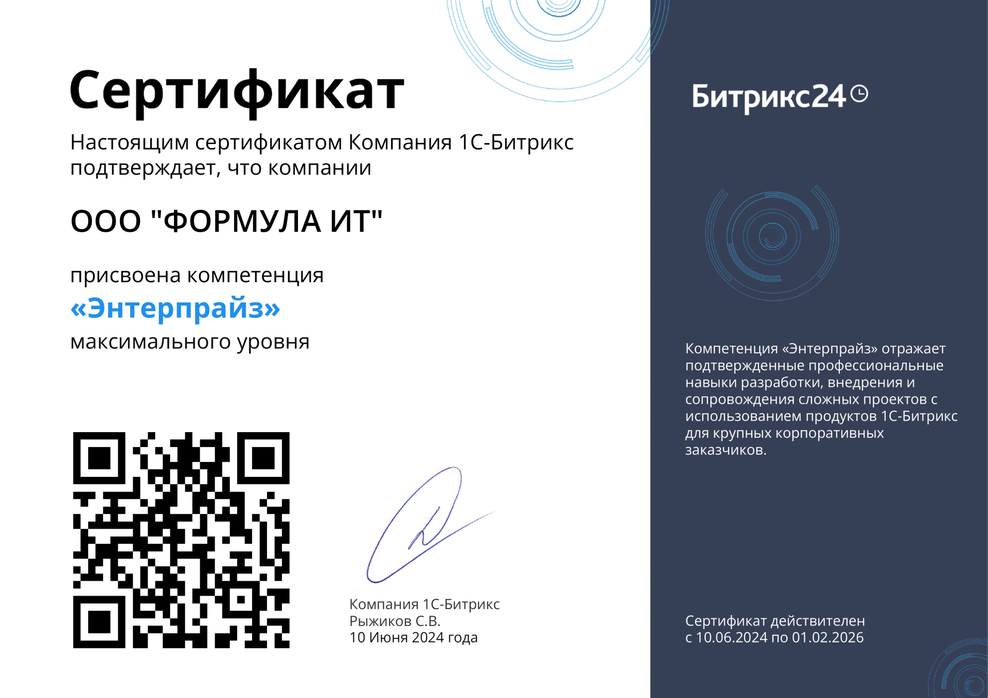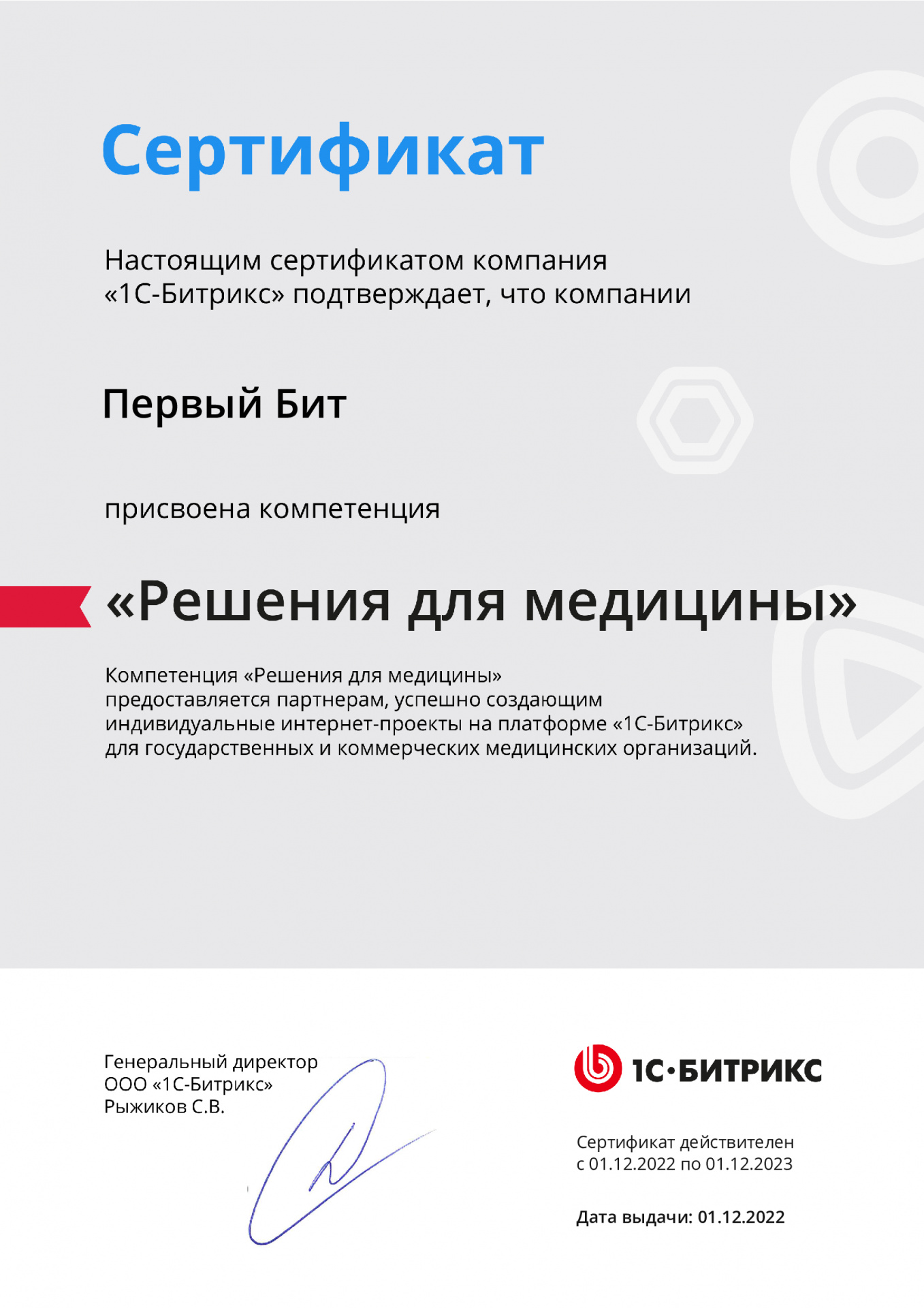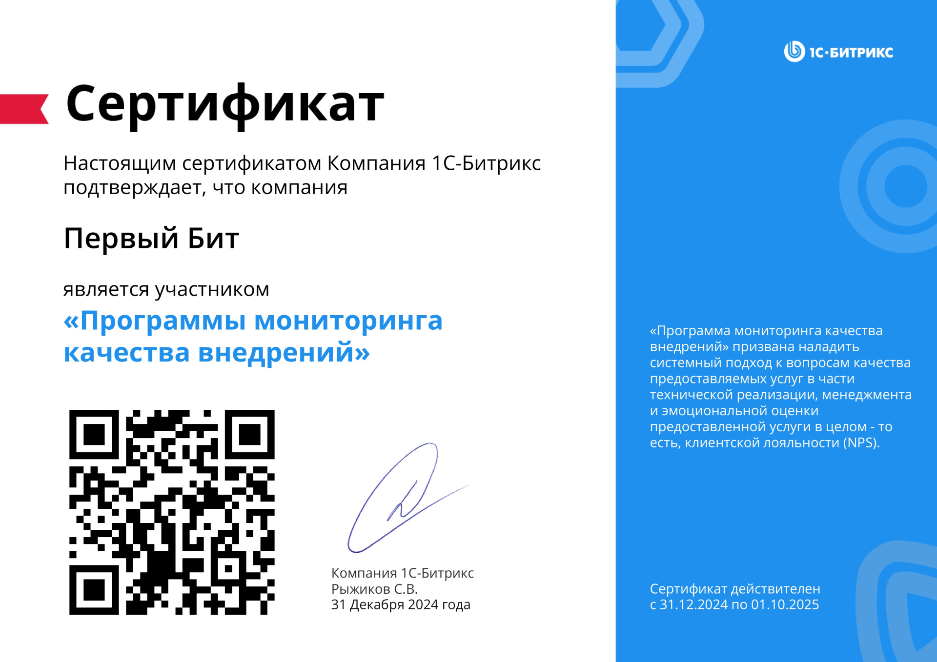 Сертификаты партнёра Первый Бит от 1С-Битрикс