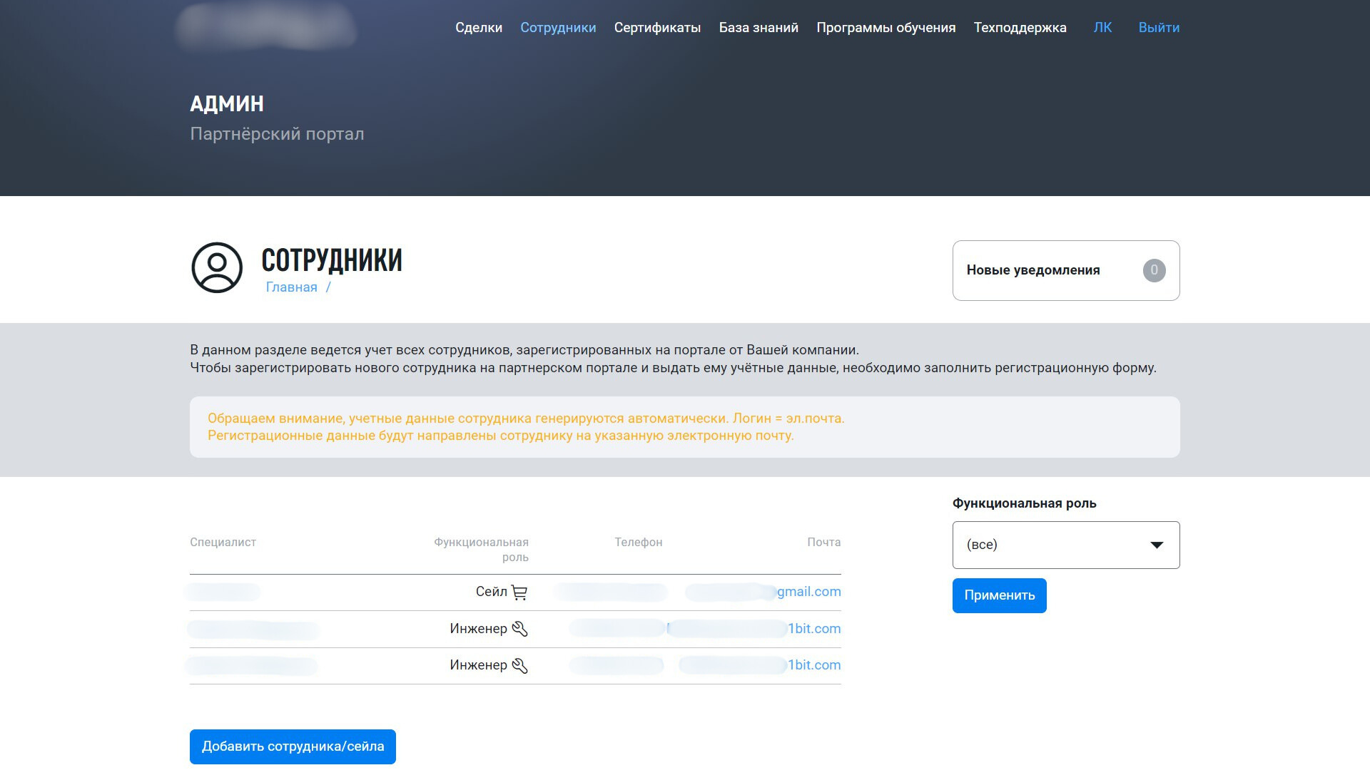 Для работы с партнерами мы разработали отдельный портал. После регистрации партнеры получают доступ ко всем возможностям площадки: сделкам, базе знаний, программам обучения и сертификации.