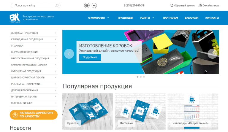 «Типография ВК» — типография полного цикла и член Южно-Уральской торгово-промышленной палаты.